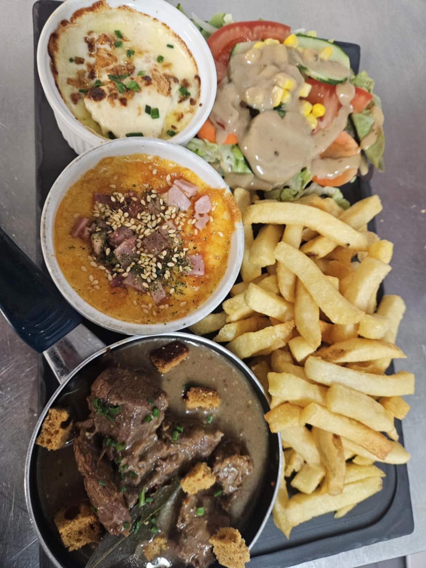 AL'Fameuse Franquette vous propose une cuisine entièrement faite maison. L'utilisation de produits frais locaux, sélectionnés avec soin auprès de producteurs de la région, est privilégiée pour des plats savoureux. Cette démarche assure non seulement la traçabilité mais également un soutien aux circuits courts et à l'économie locale. Chaque plat servi est le fruit d'une passion pour la gastronomie et d'un engagement envers l'authenticité des saveurs.